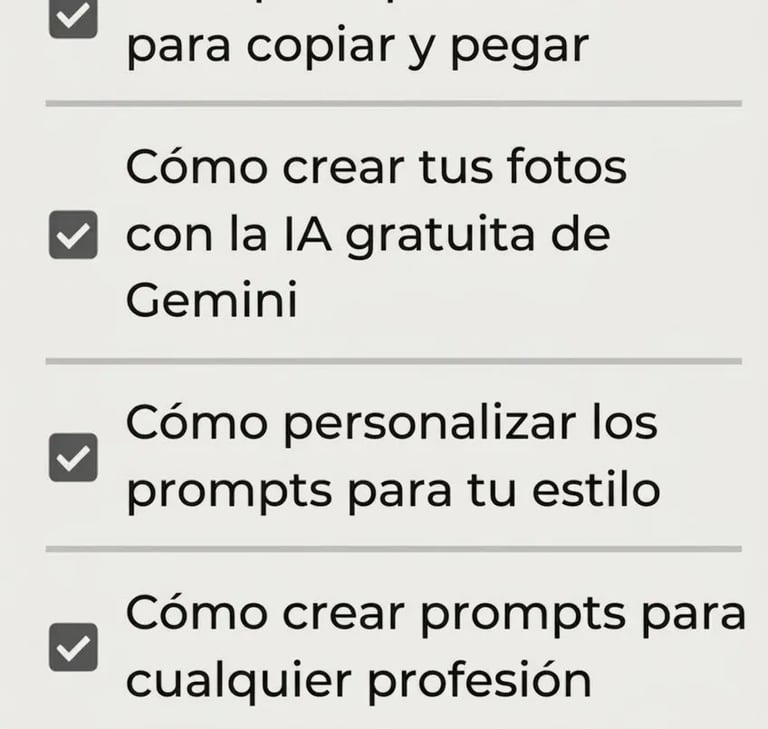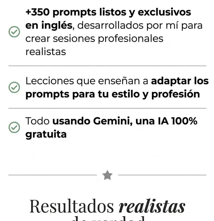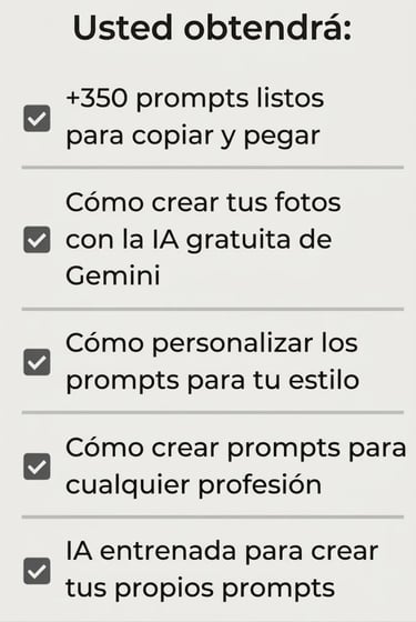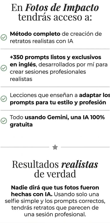 Copia y pega mis más de 350 prompts listos para que generes fotos con esencia y profesionalismo.