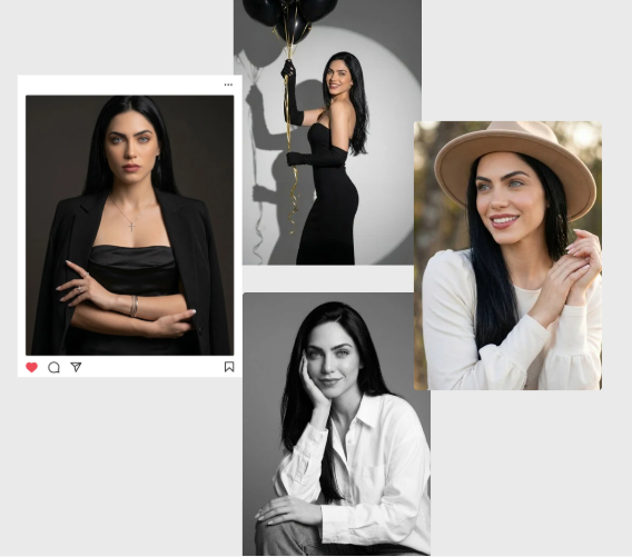 ¡Las fotos son 100% tuyas! La IA funciona como una asistente de edición avanzada, utilizando tu base real para crear nuevos escenarios, poses y estilos, manteniendo siempre tu identidad.